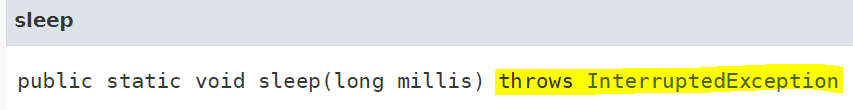 * Thread 클래스의 static 메소드인 sleep()메소드는 try-catch문 안에서만 사용할 수 있음.