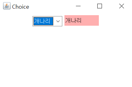 - Choice 박스는 선택하면 new ItemEvent 이벤트 객체를 발생시키고, 이를 계속 살펴주는건 ItemListener이다.