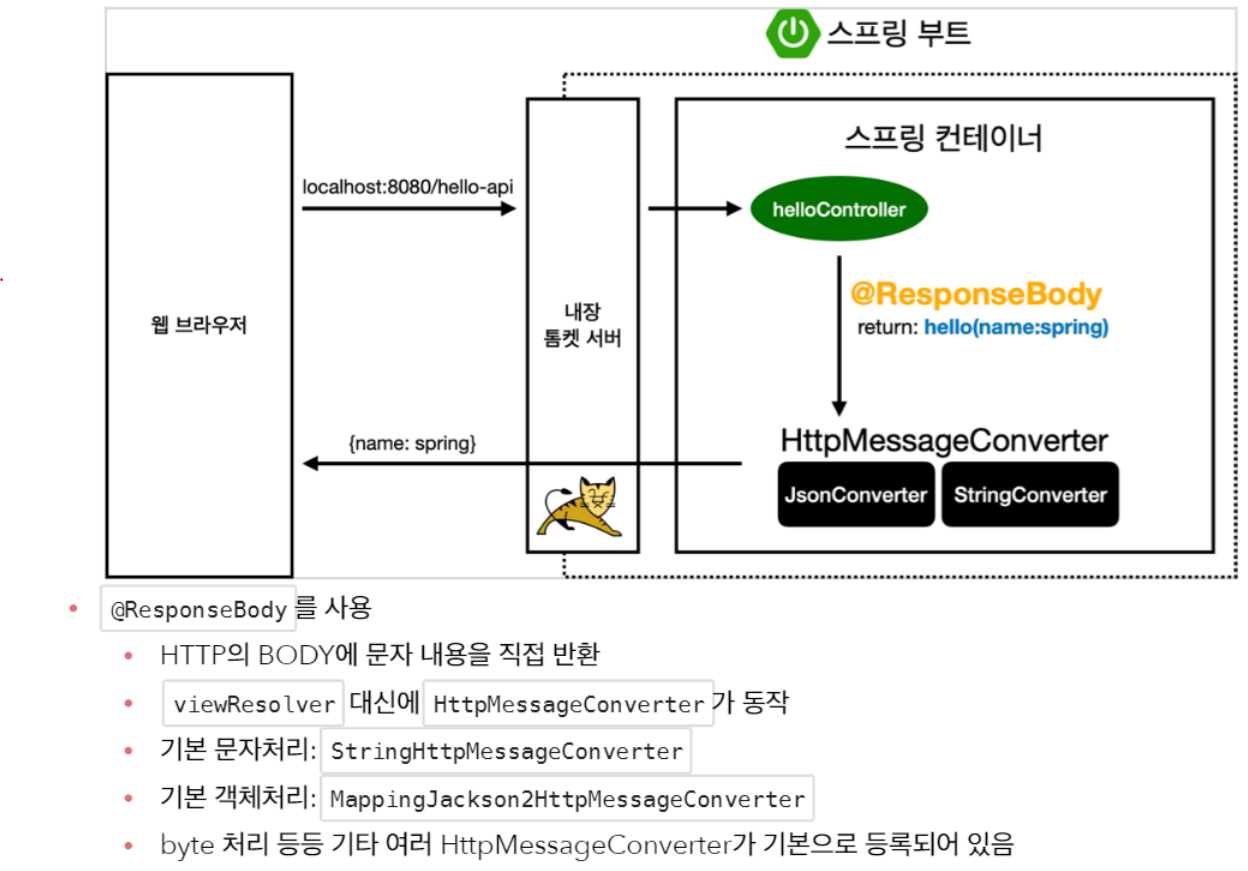 메서드에 @ResponseBody 가 하나 더 붙어서 ViewResolver가 아니라 HttpMessageConverter가 돌아간다.