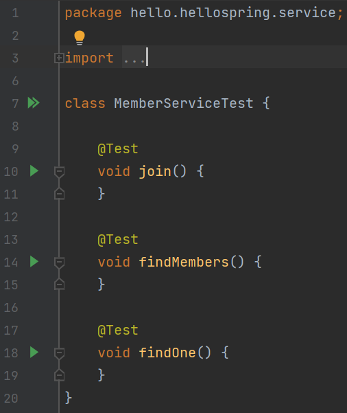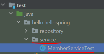 service 패키지 위치에서 생성한 MemberService 클래스 내의 메서드 들을 테스트 한다.