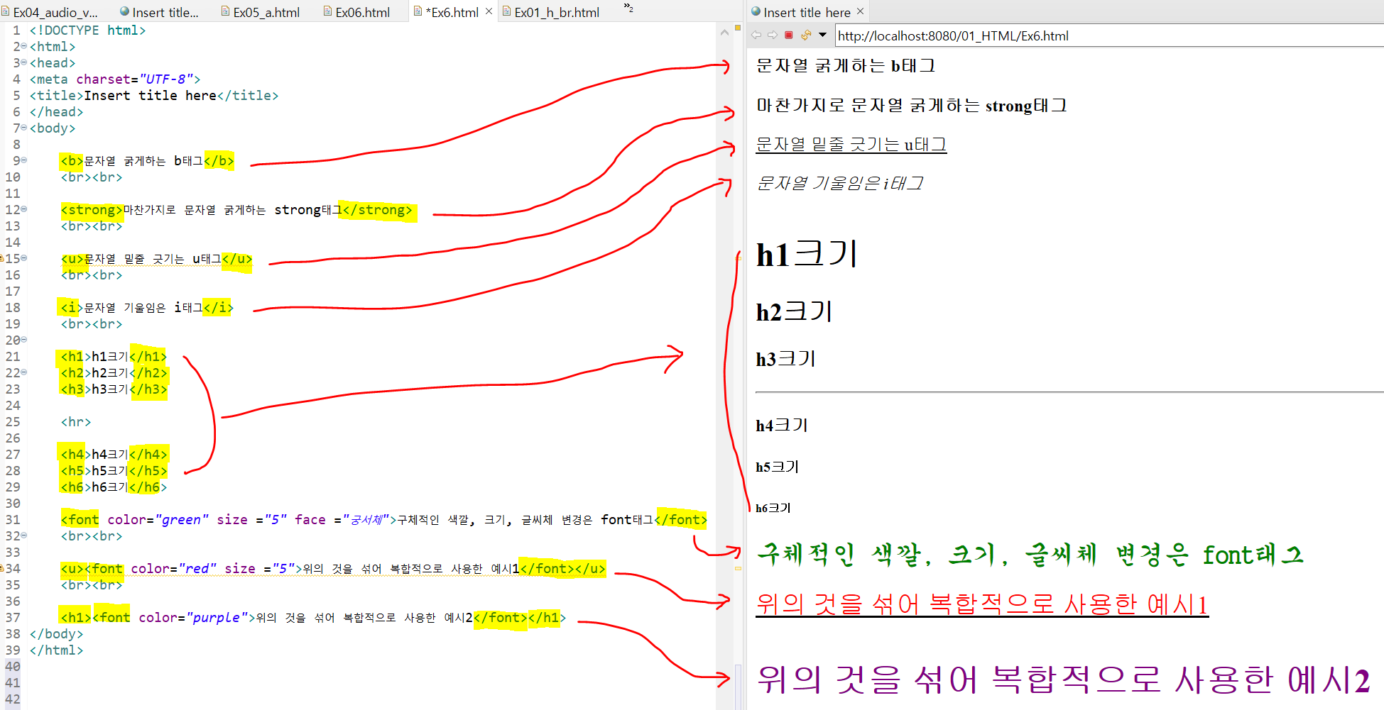 [8주차] 11. 태그 : <b, strong, u, i, h, font> 글자 속성 조정가능 태그