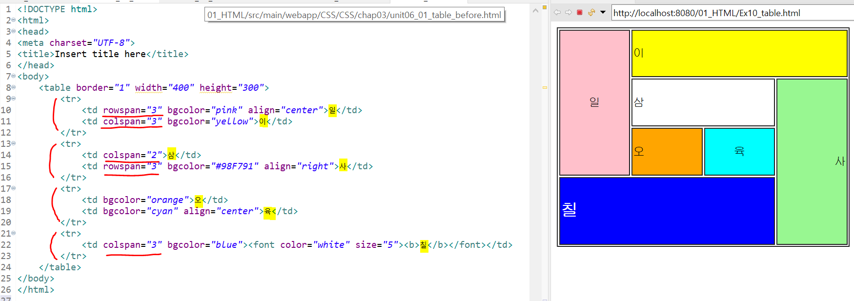 [8주차] 14-2. 태그 : <table> 셀을 합치는 속성 rowspan, colspan 본문