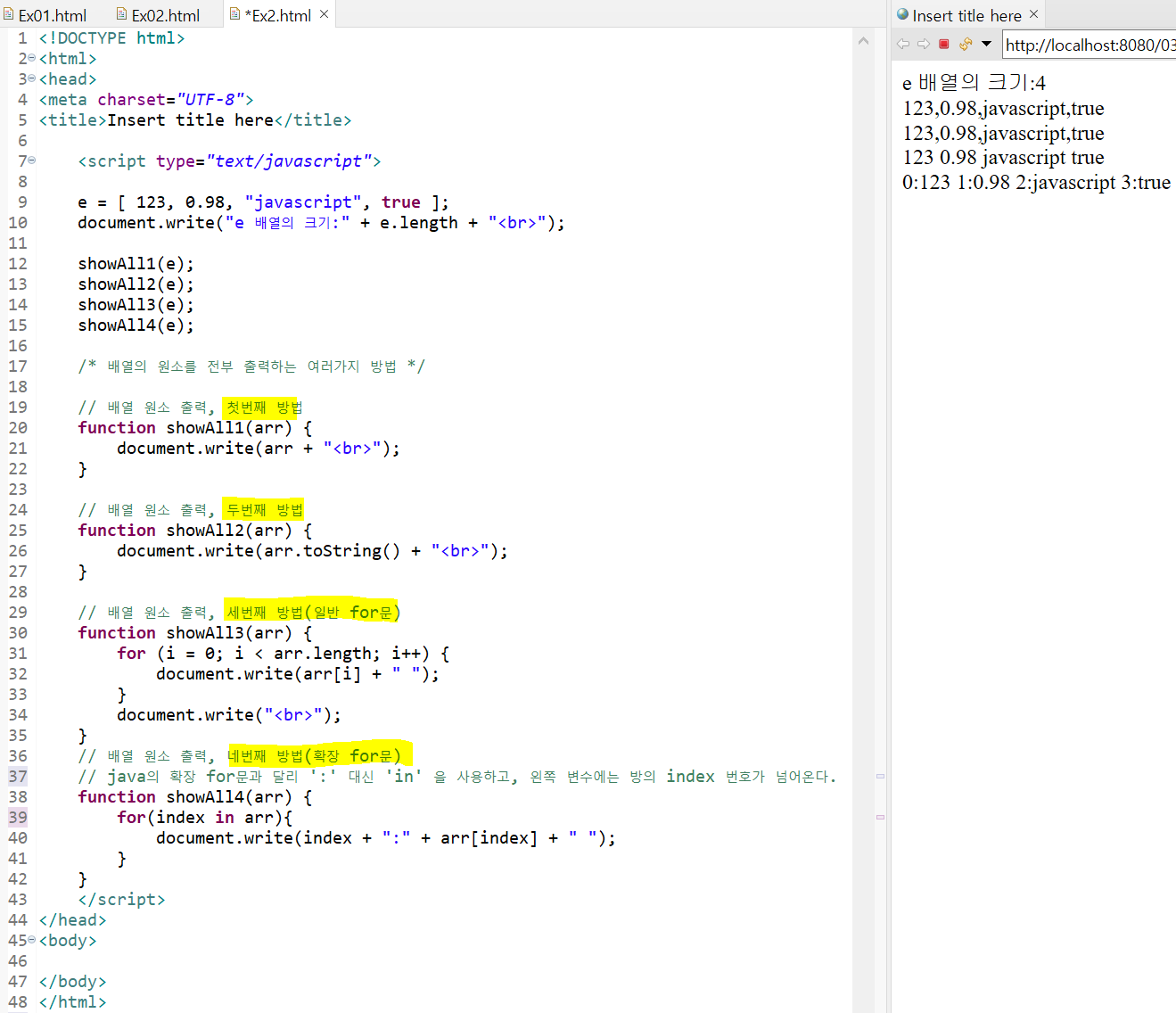 [8주차] 19. 자바스크립트, Array 1차원 배열 원소를 전부 출력하는 4가지 방법(feat. 확장 for문) 본문