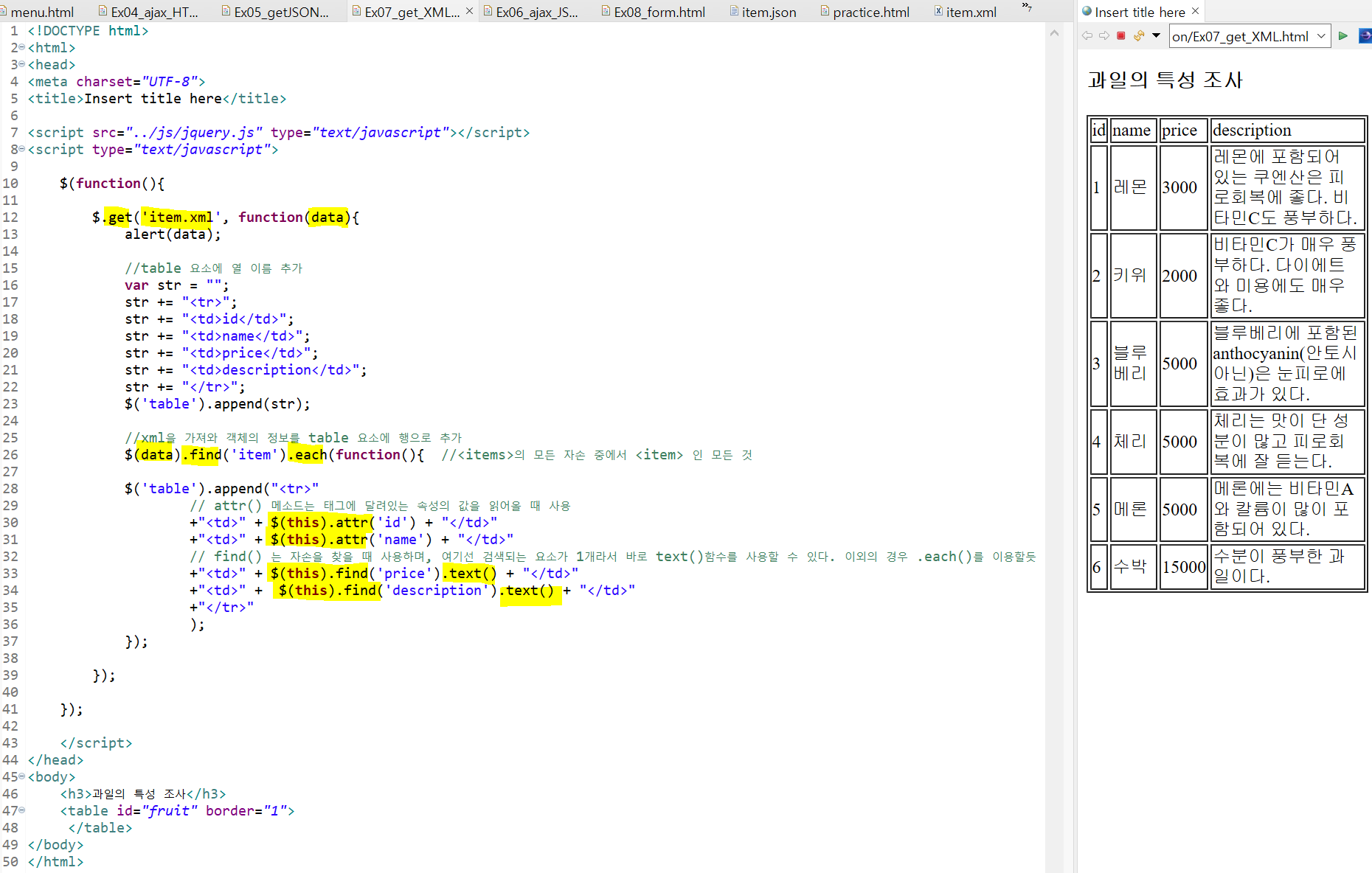 $(data).find('item').each(function(){ //<items>의 모든 자손 중에서 <item> 인 모든 것