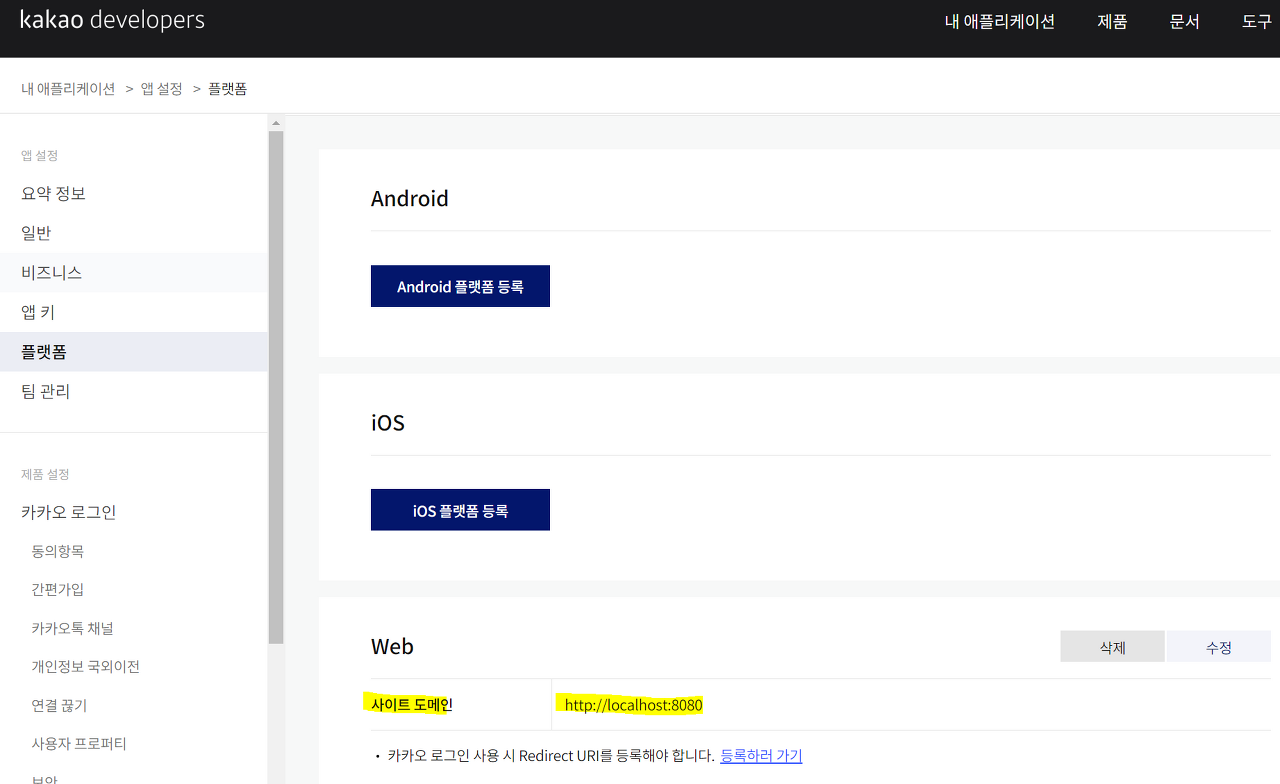 - 소유하고 있는 도메인이 존재하지 않더라도 로컬에서 실행하는 것이라면 localhost~ 이런식으로 등록해줘야 한다.