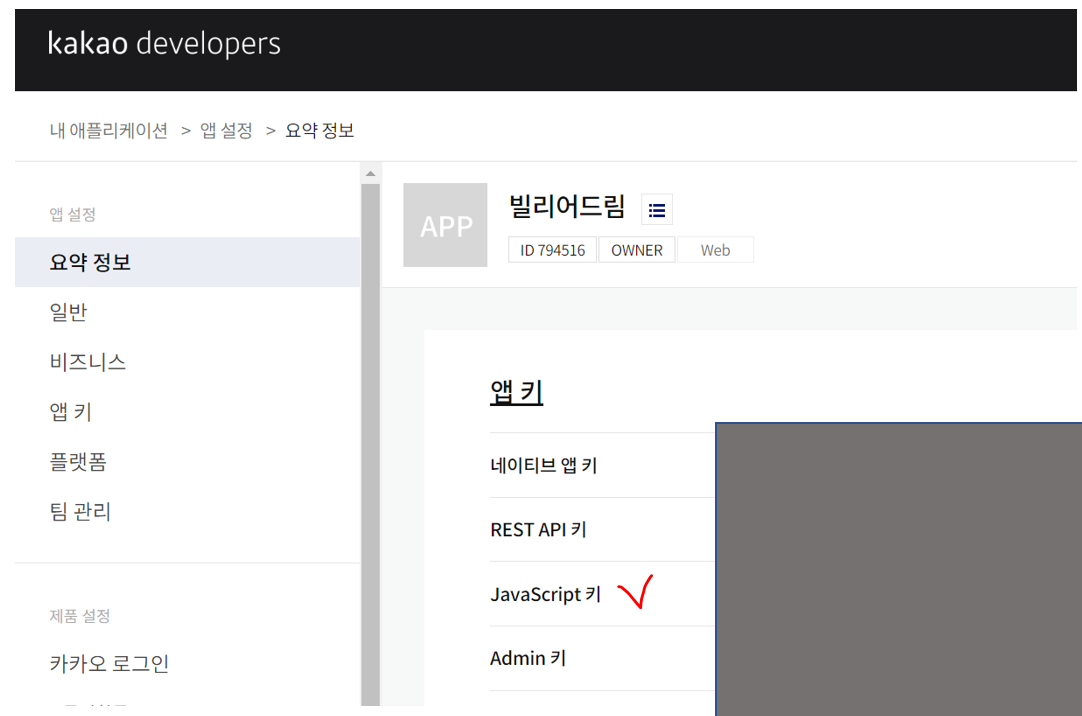 아래의 예시 코드의 경우 javascript를 사용하여 호출하기 때문에 javascript 키를 사용해야 한다.