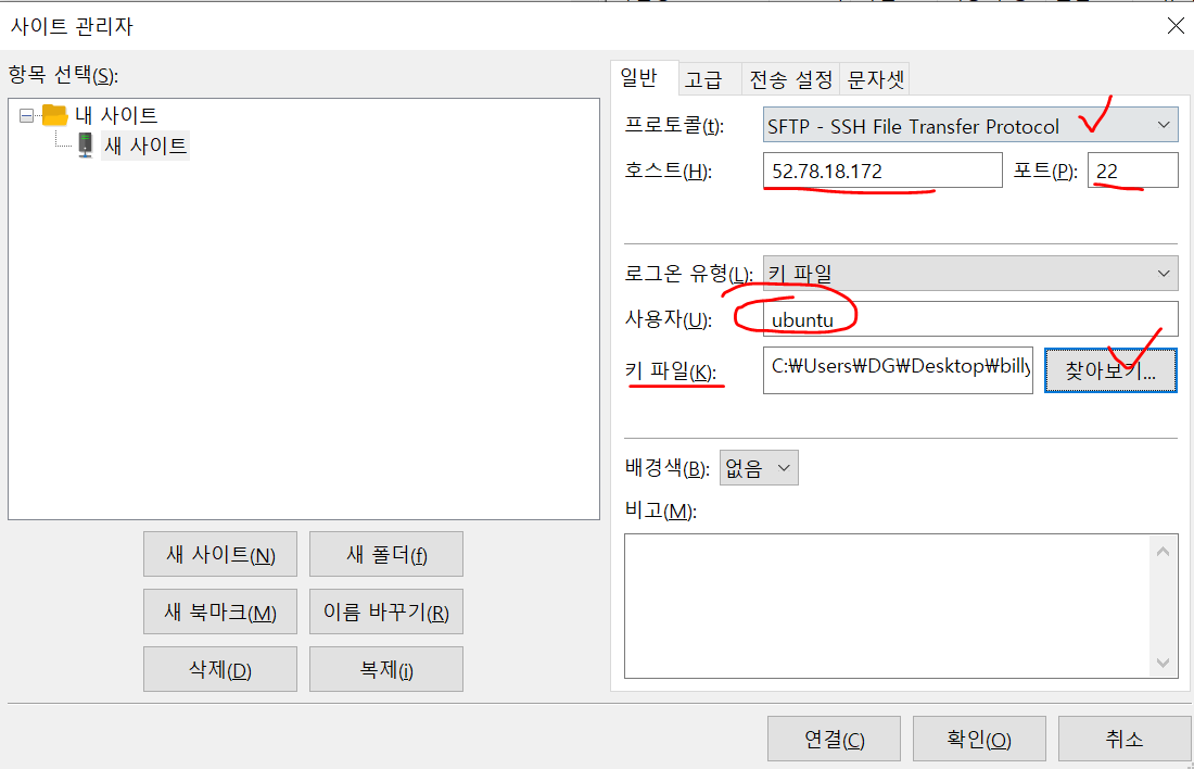 * 키파일 : AWS에서 EC2 인스턴스 생성할 때 다운받은 키 파일을 이용하면됨