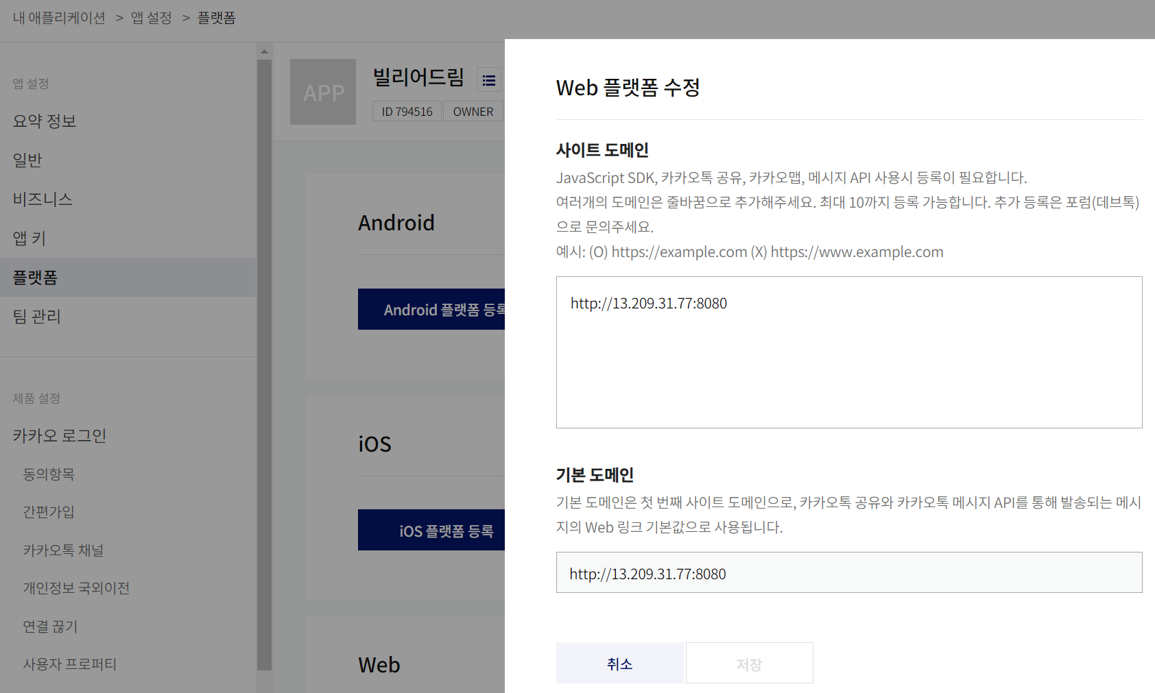 3. API를 사용하고 있다면 API를 호출할 수 있는 곳의 도메인 수정해주기