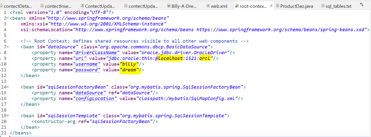 src/main/webapp/WEB-INF/spring/root-context.xml 에서 아래 부분을 수정해주면 된다.
