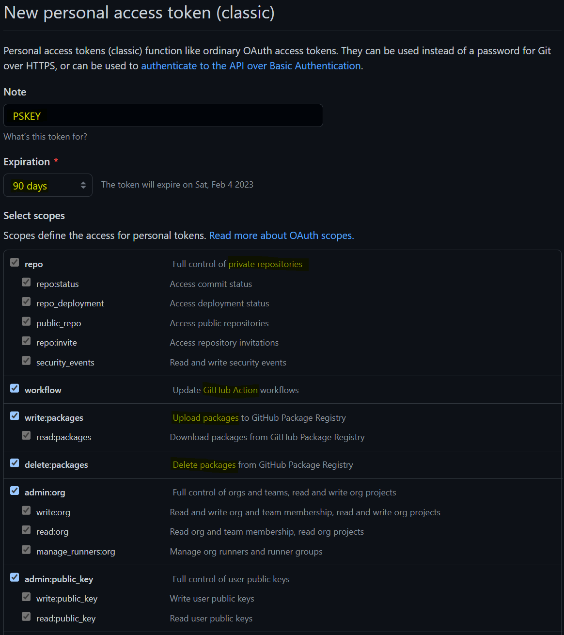 Select scopes 에 존재하는건 전부 체크하길 추천한다.
