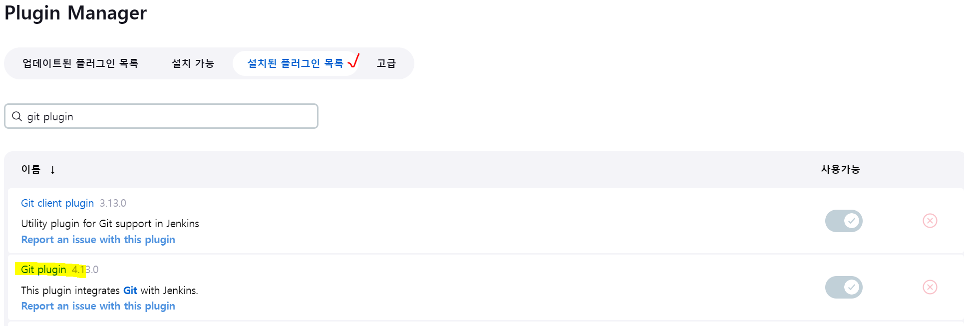 1) Git plugin -> 젠킨스 초기 설치 때 설치되어 있어 내가 설치해주지 않았음