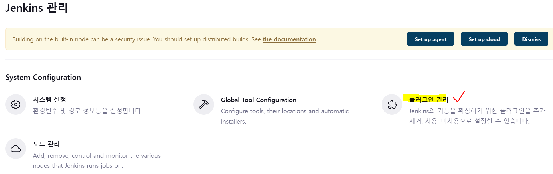 * 마지막 플러그인은 설치 후 젠킨스 재시작을 한 번 해주자.