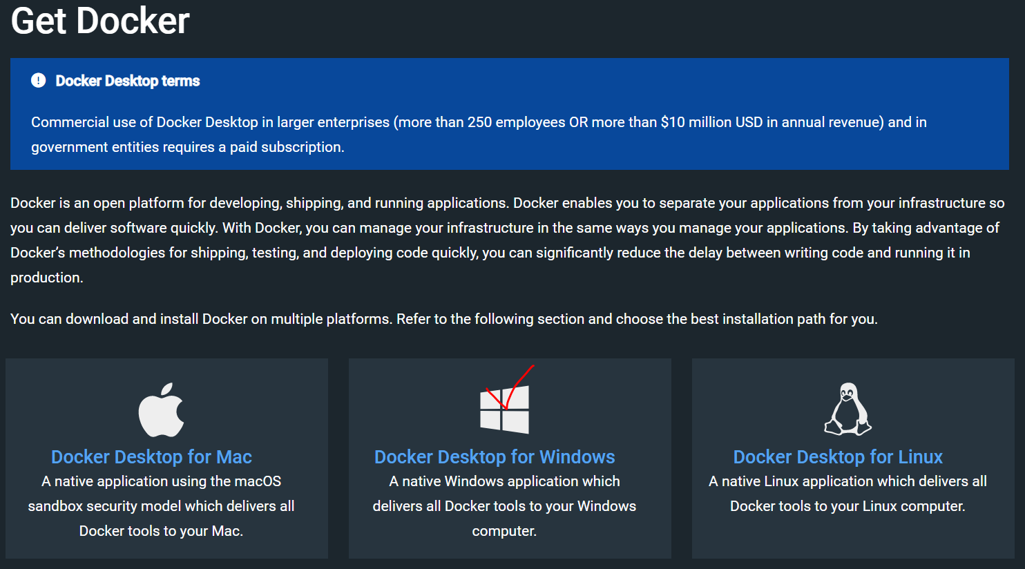 * Docker Desktop은 Docker 를 실행하는 수많은 방법중 하나이다. 다른 방법으로 VirtualBox를 이용한 방법이 있다.