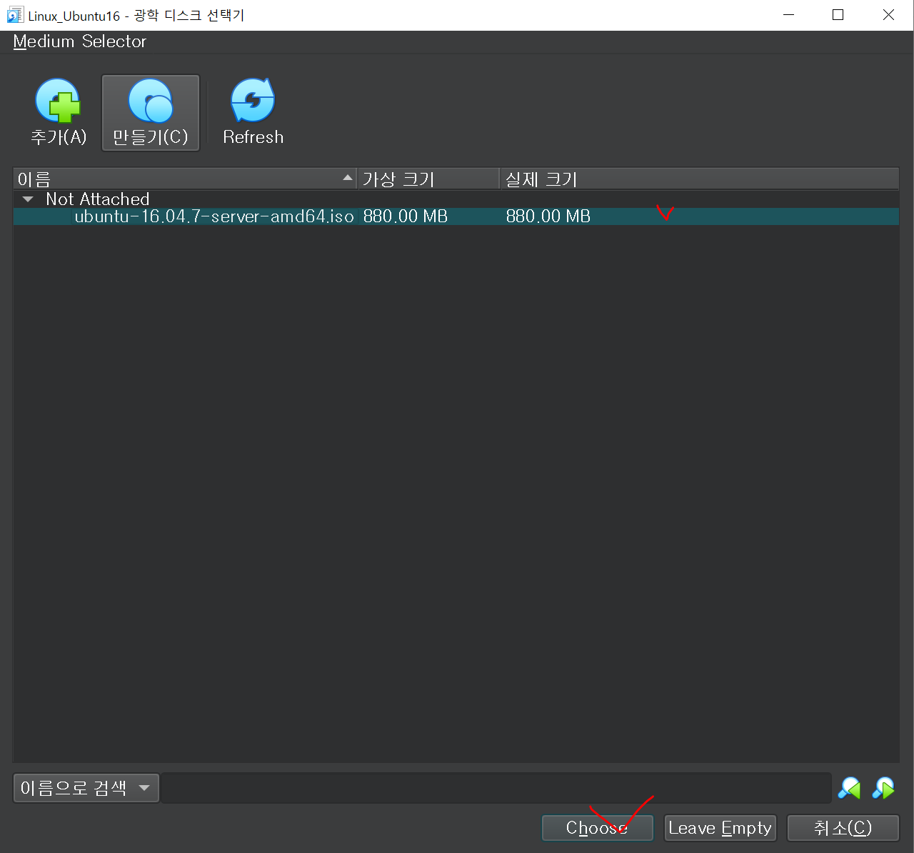 이제 다음 단계에서 이 가상머신에 우분투를 설치해줄 차례이다.