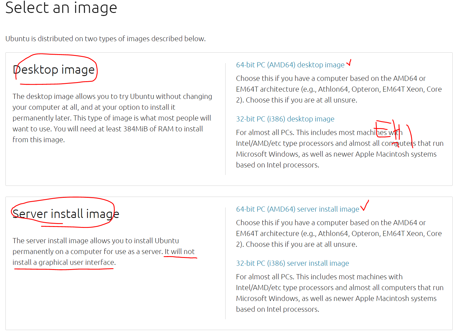 리눅스를 사용하는데 익숙하지 않다면 데스크톱 버전을, 리눅스를 사용하는 데 익숙하다면 서버 버전을 선택하여 다운받아준다. 데스크톱 버전은 그래픽 유저 인터페이스가 제공된다는 차이점이 있는 듯 하다.