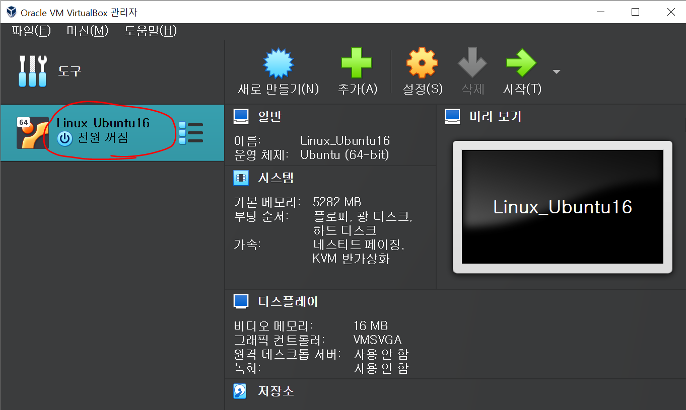 내가 설정한 가상머신이 생성된 것을 확인할 수 있다.