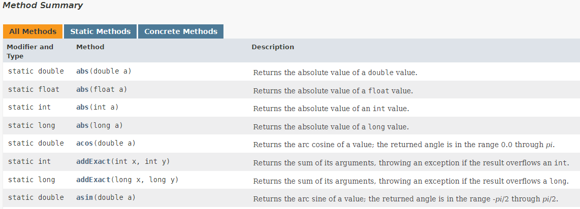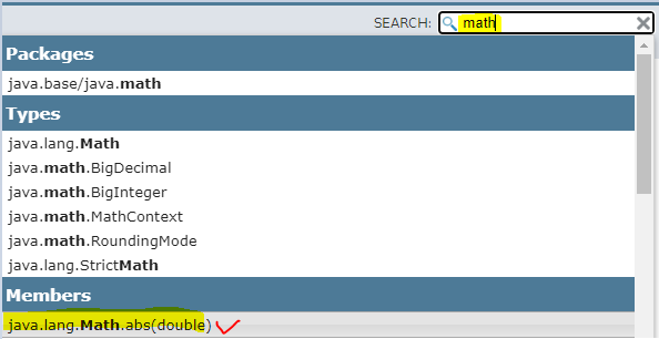 Java API에서 'Math' 클래스 검색예시
